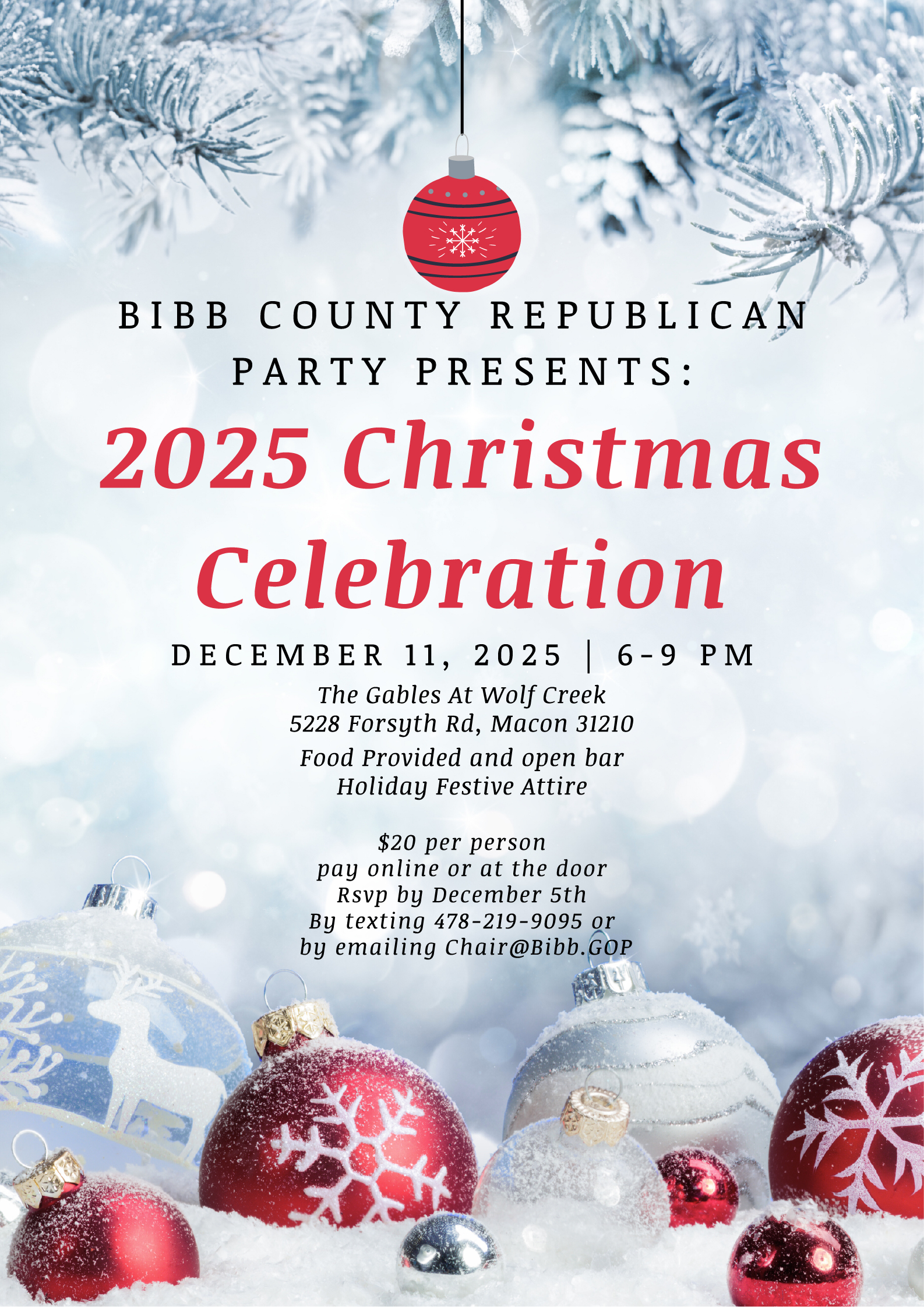 The Gables At Wolf Creek 5228 Forsyth Ra, Macon 31210 Food Provided and open bar Holiday Festive Attire